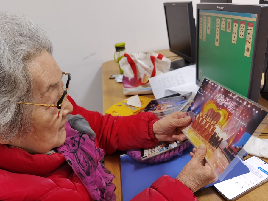 敬老院的工作人员发现,寿惠芳变了。往常,寿惠芳在活动室上网、玩蜘蛛纸牌,最近却一坐下就戴上老花镜,对着手机麦克风练习发音。